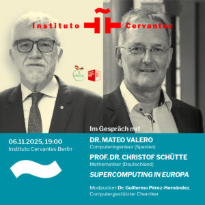 En el marco de la Berlin Science Week 2025, el ingeniero Mateo Valero y el matemático Christof Schütte dialogan sobre el presente y futuro de la supercomputación en Europa. Desde perspectivas complementarias, abordarán los retos científicos y tecnológicos del cálculo de alto rendimiento. La conversación será moderada por el químico computacional y miembro de CERFA Guillermo Pérez-Hernández. Una oportunidad única para entender cómo la supercomputación transforma ciencia e industria.